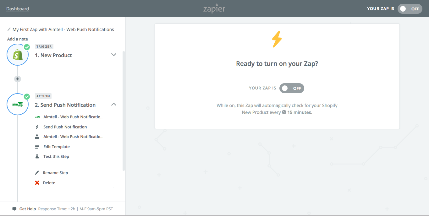 Then you're done! Now you have successfully utilized Zapier to send a push notification with Aimtell whenever a New Product gets added to your Shopify store.