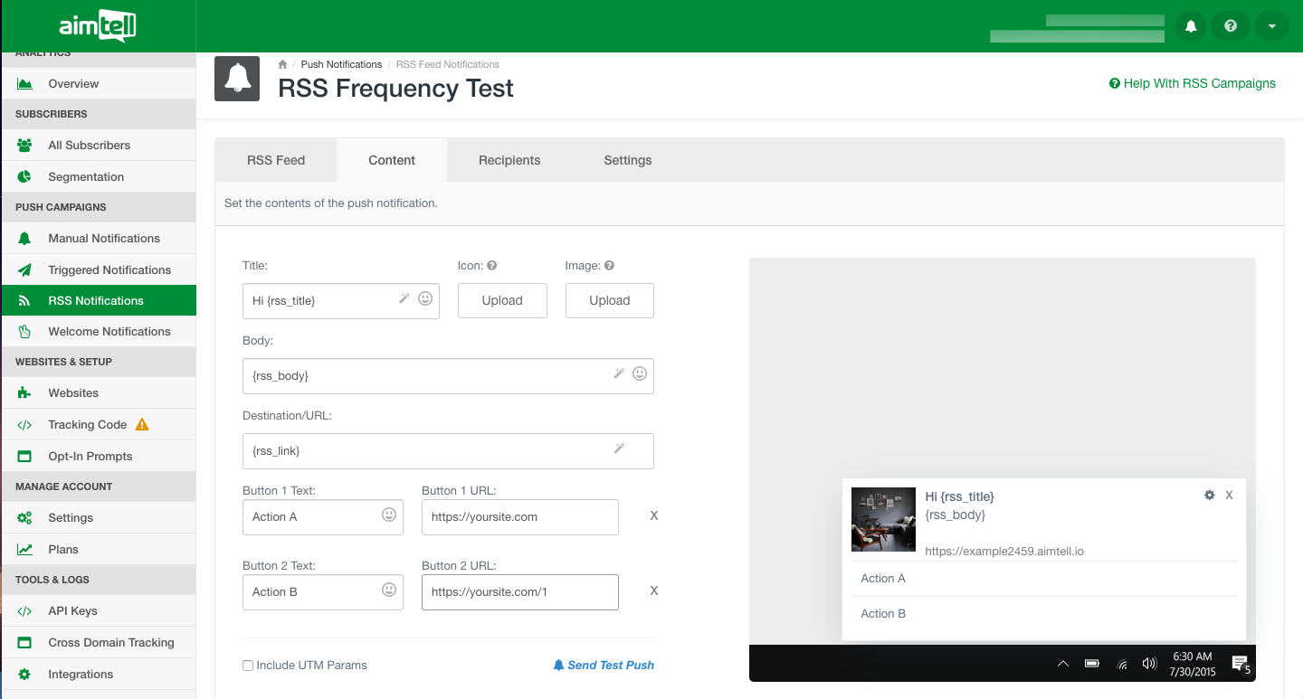 You can click “send test push” to see what the push will look like with these variables filled in. This feature is available on Chrome and Firefox only.*