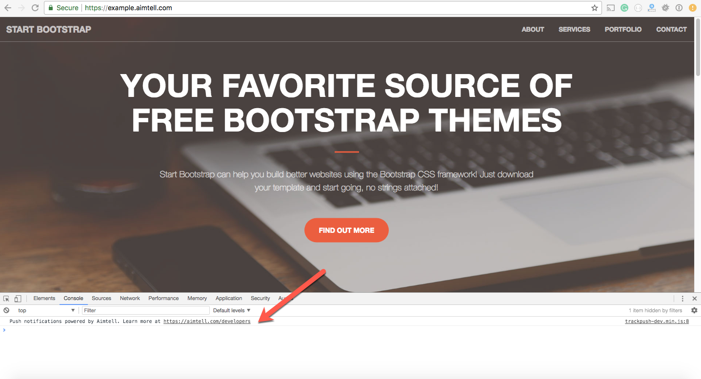 By default, all websites will show a small "Powered by Aimtell" within the developer console. The vast majority of your website visitors will never see this unless they actively search through your websites console/code.