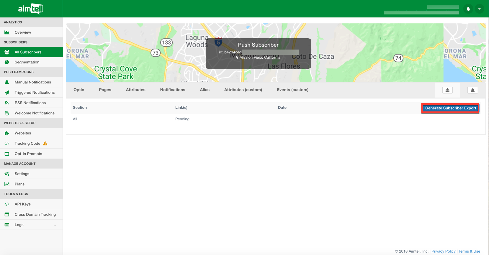 Once you are here, click on the 'Download button' Tab next to the bell icon, then click on the blue button that says 'Generate Subscriber Export.