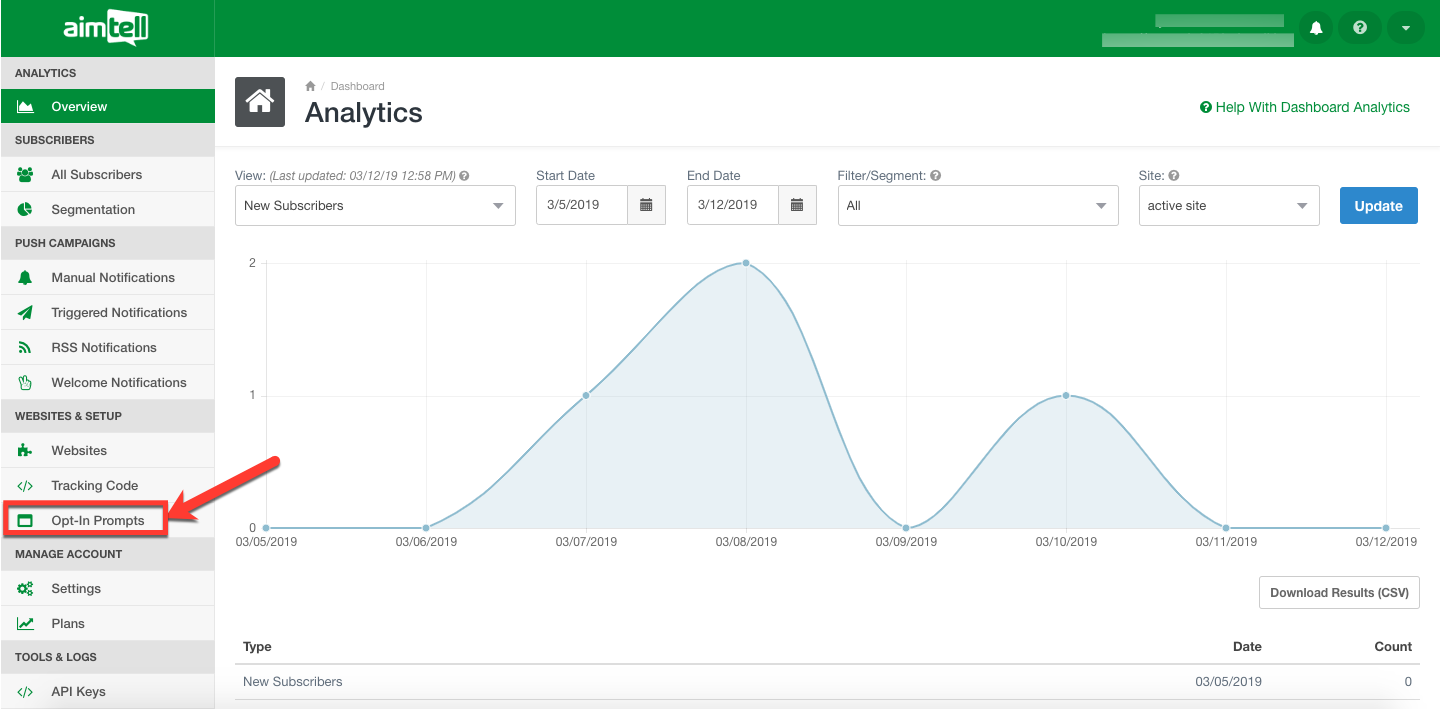 Click on "Opt-In Prompts" on the left side of your dashboard.
