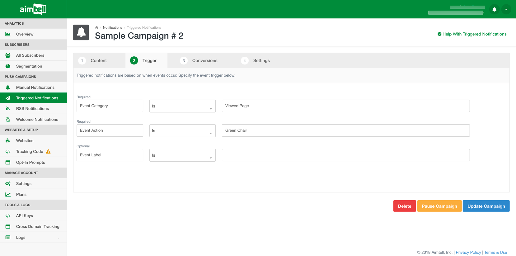 That’s it! Your new triggered notification will display along with all of your other triggered campaigns.