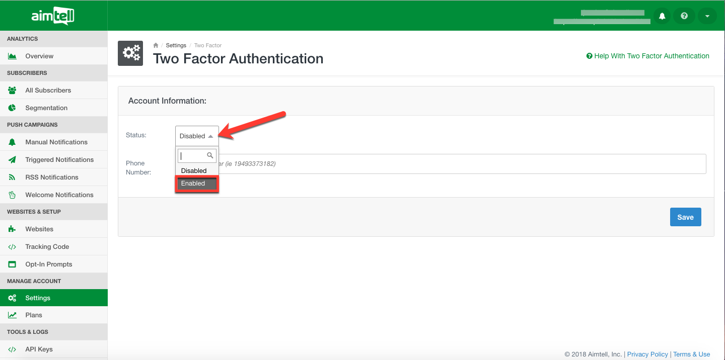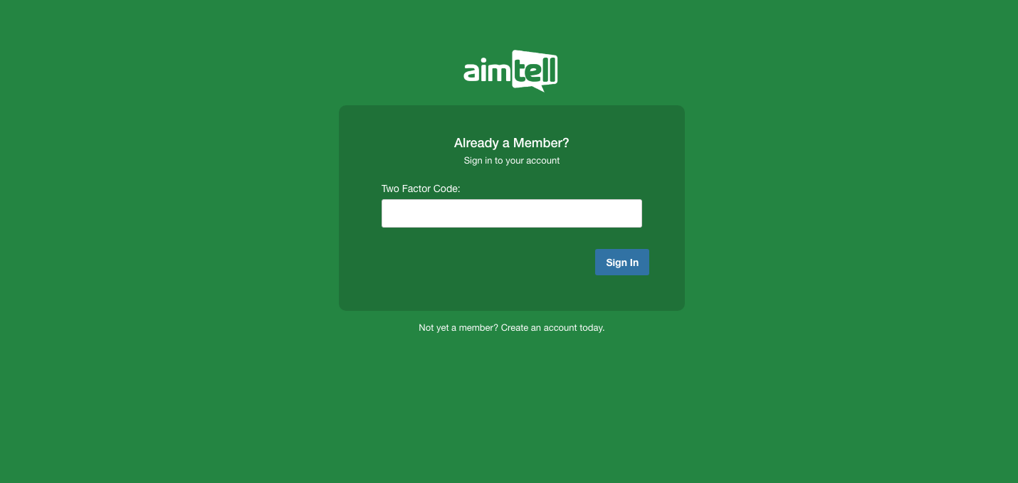 If you have any questions regarding Two Factor Authentication on your account, feel free to reach out to support@aimtell.com
