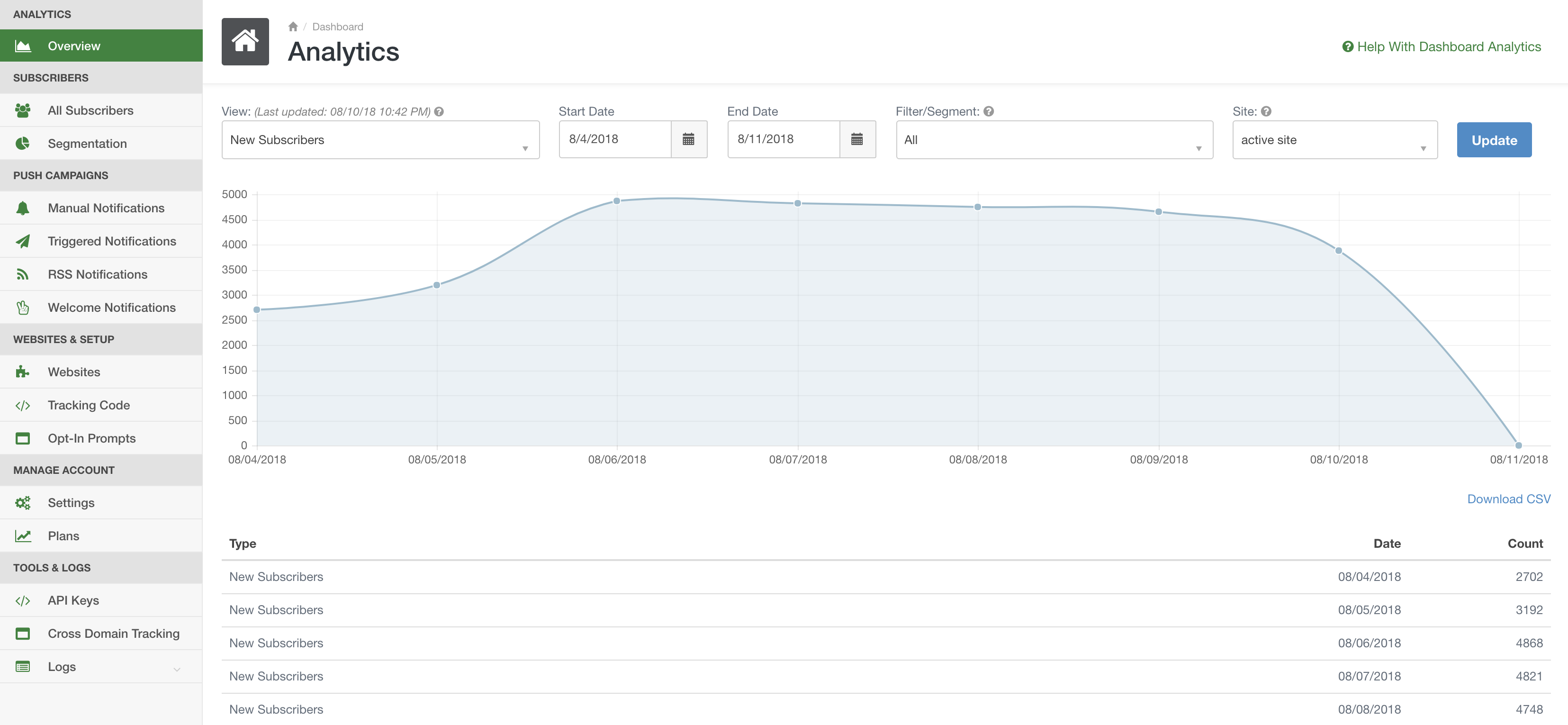 New Subscribers- Users who opted-in to your site’s push notifications.