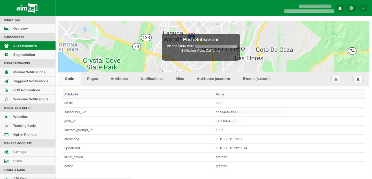 - custom_prompt_id - the id of the prompt that this individual subscriber clicked to opt-in to push notifications for your site.