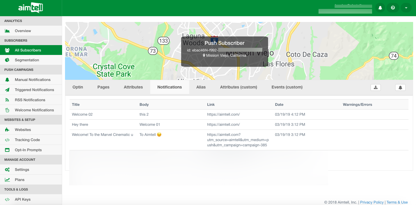 - Events (custom) Each tab will provide you with additional details regarding the individual subscriber.